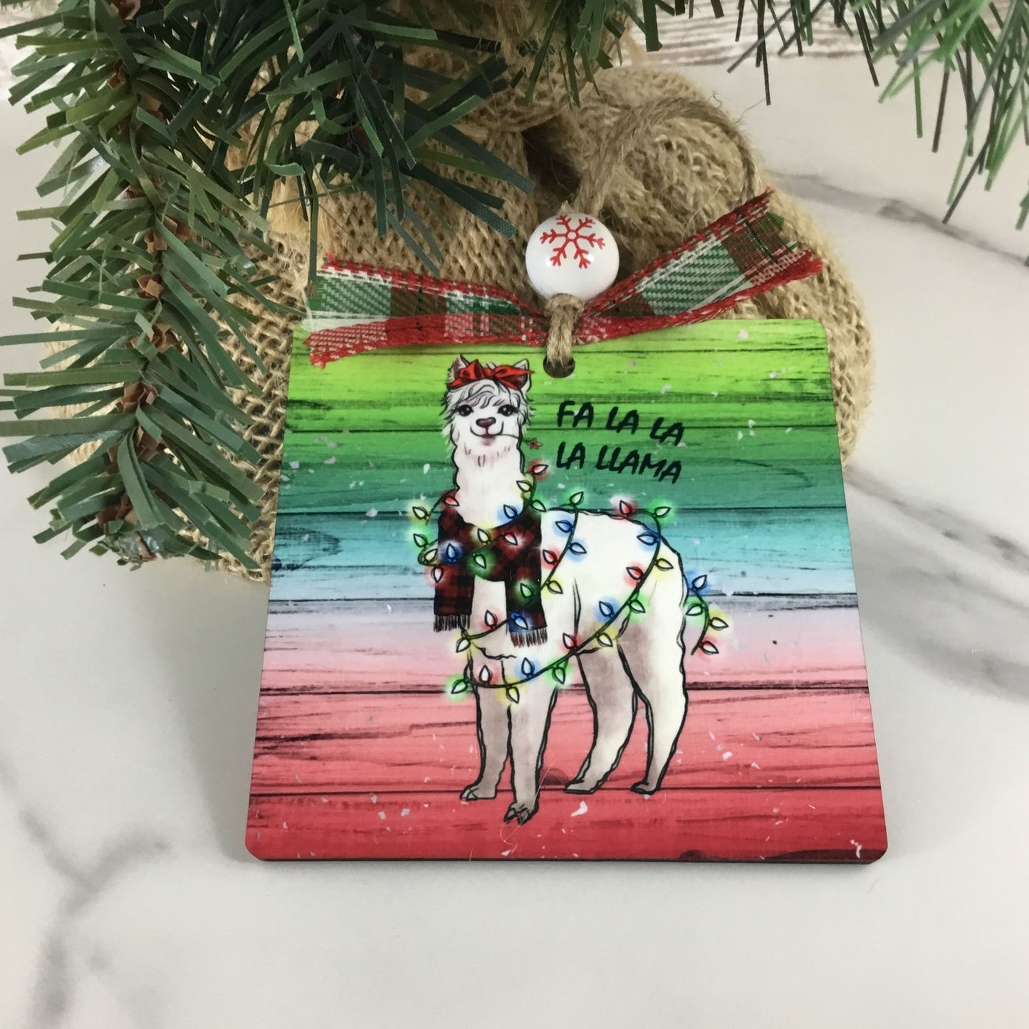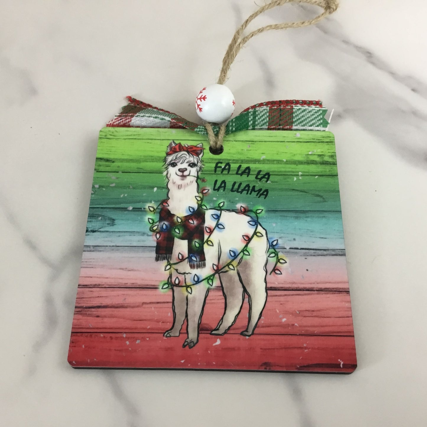 Fa La La La Llama 3.5" Square Wooden Christmas Ornament