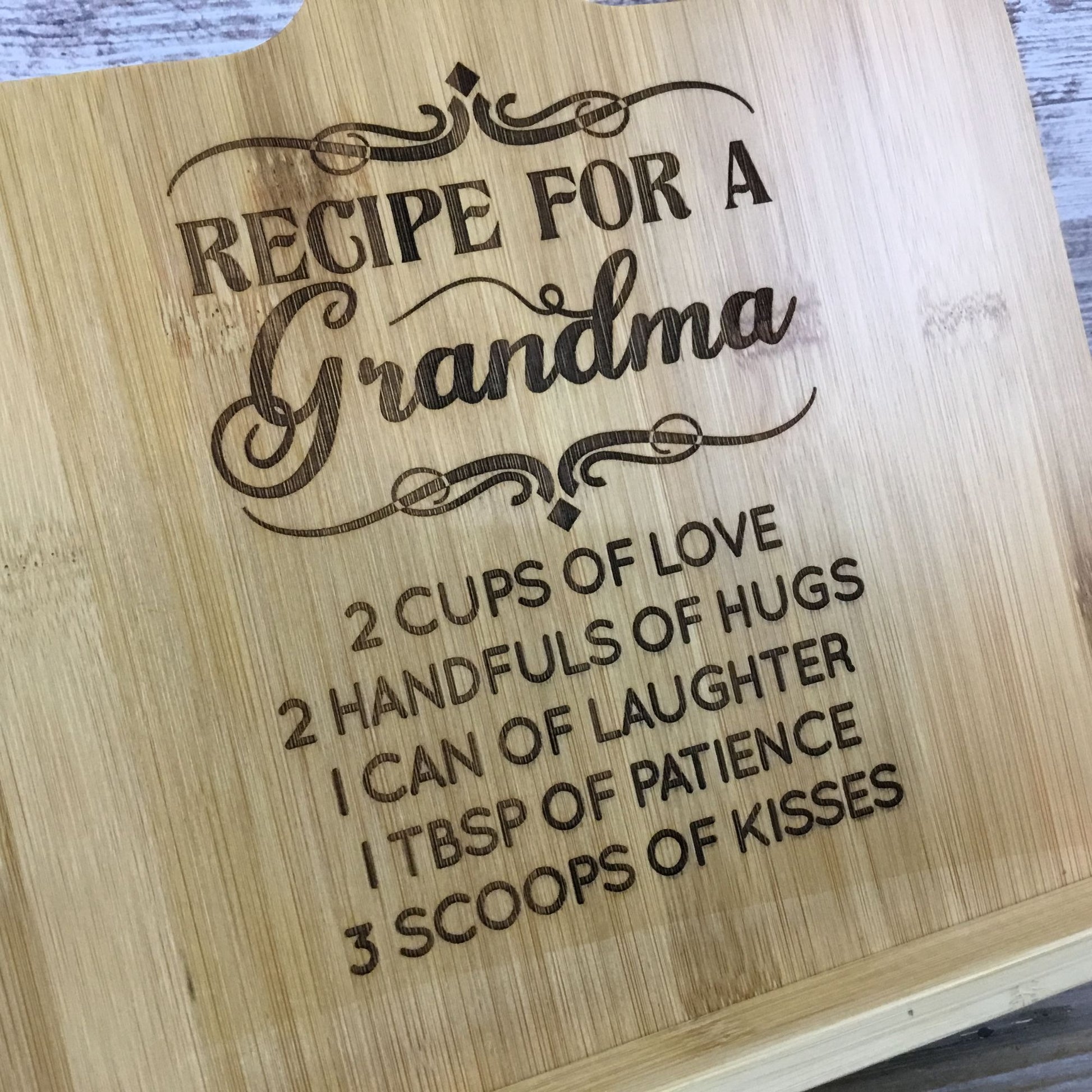 A meaningful gift for Grandma that she’ll cherish and use. This bamboo cookbook stand is engraved with a playful "Recipe for a Grandma" poem and is great for holding cookbooks, tablets, or even cherished handwritten recipes.