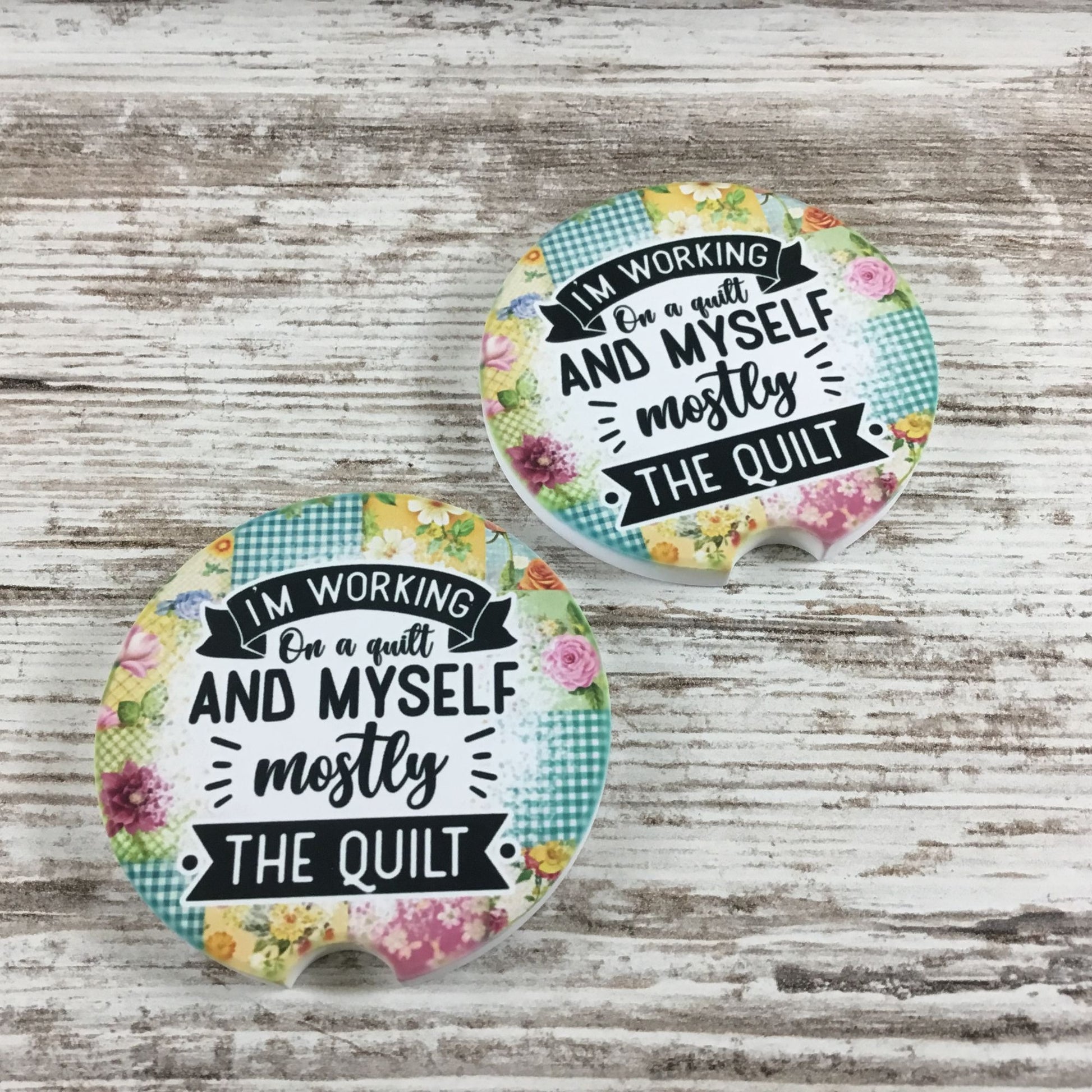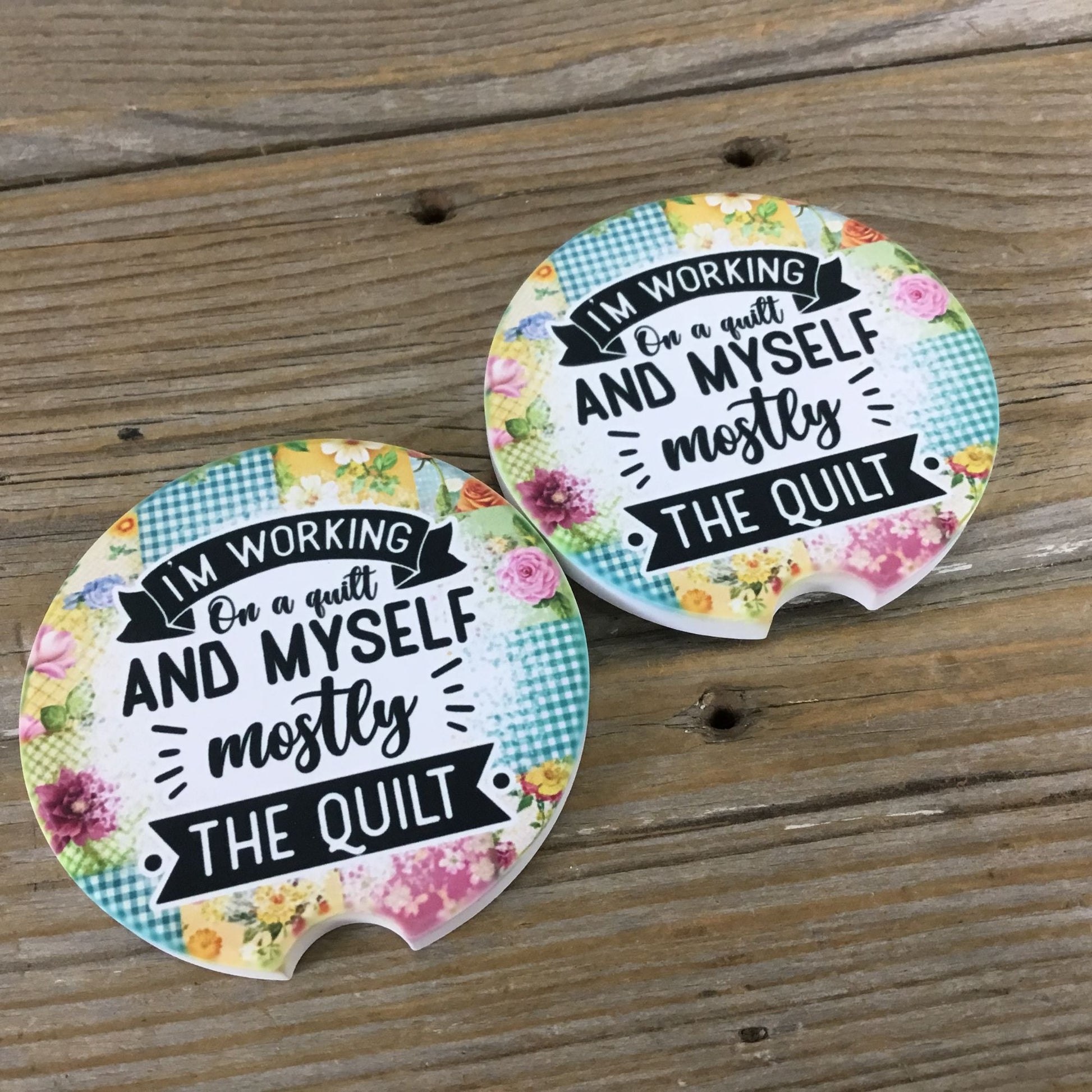 I’m Working on a Quilt and Myself. Mostly the Quilt Set of 2 Sandstone Car Coasters