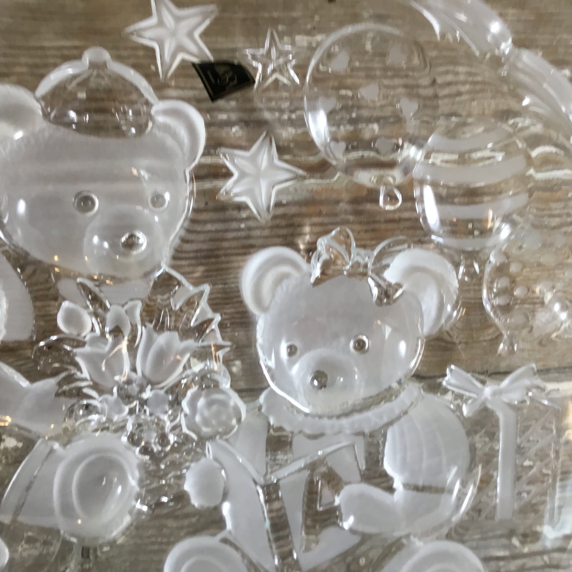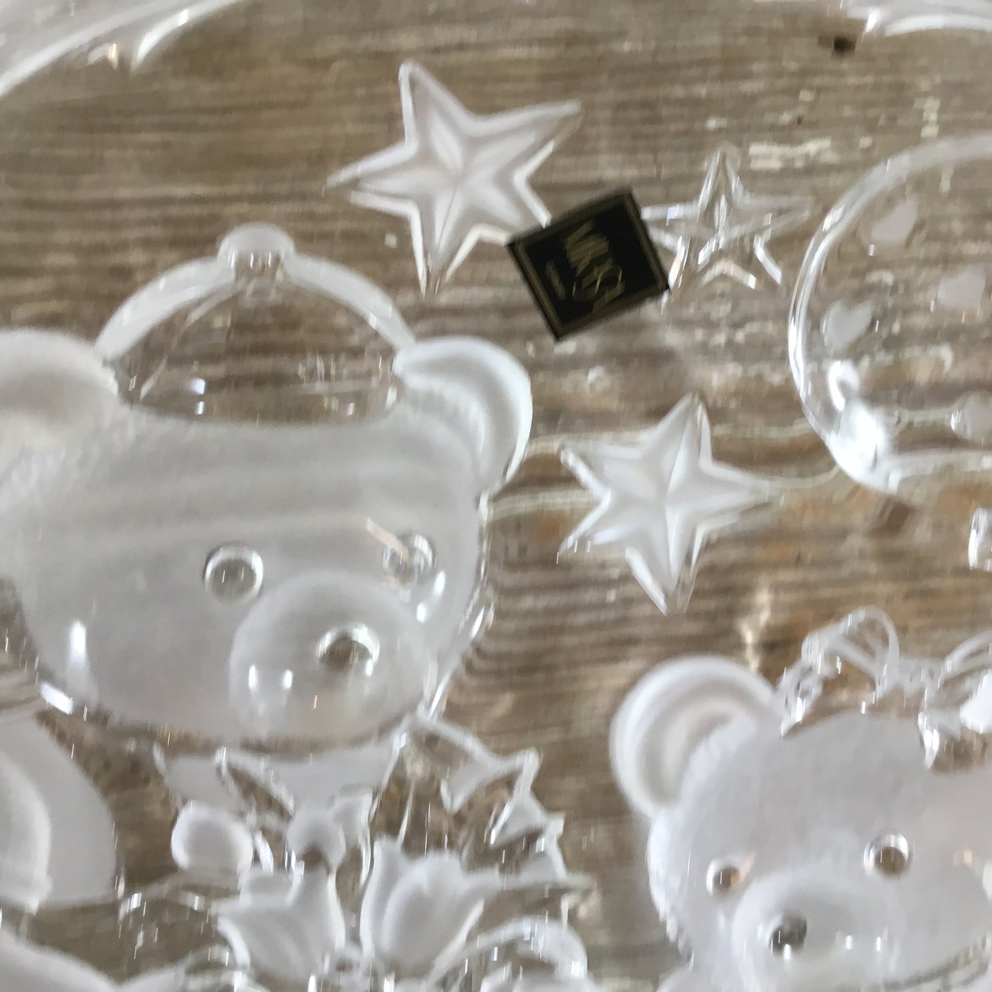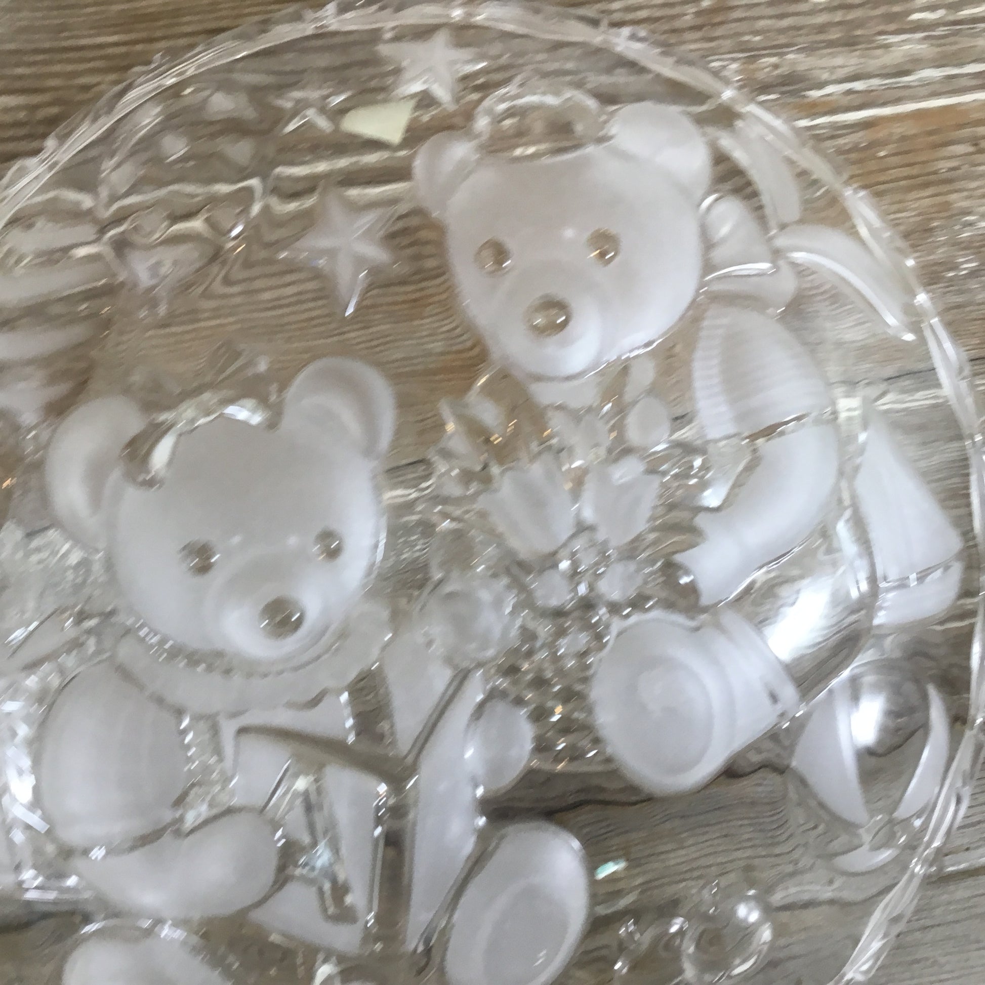 The plate is in good condition, still retaining its original sticker, ensuring its authenticity. The embossed frosted finish gives it a unique texture, making it a standout piece for any table setting. Whether you're hosting a birthday party, baby shower, or any special occasion, this platter is sure to impress your guests.