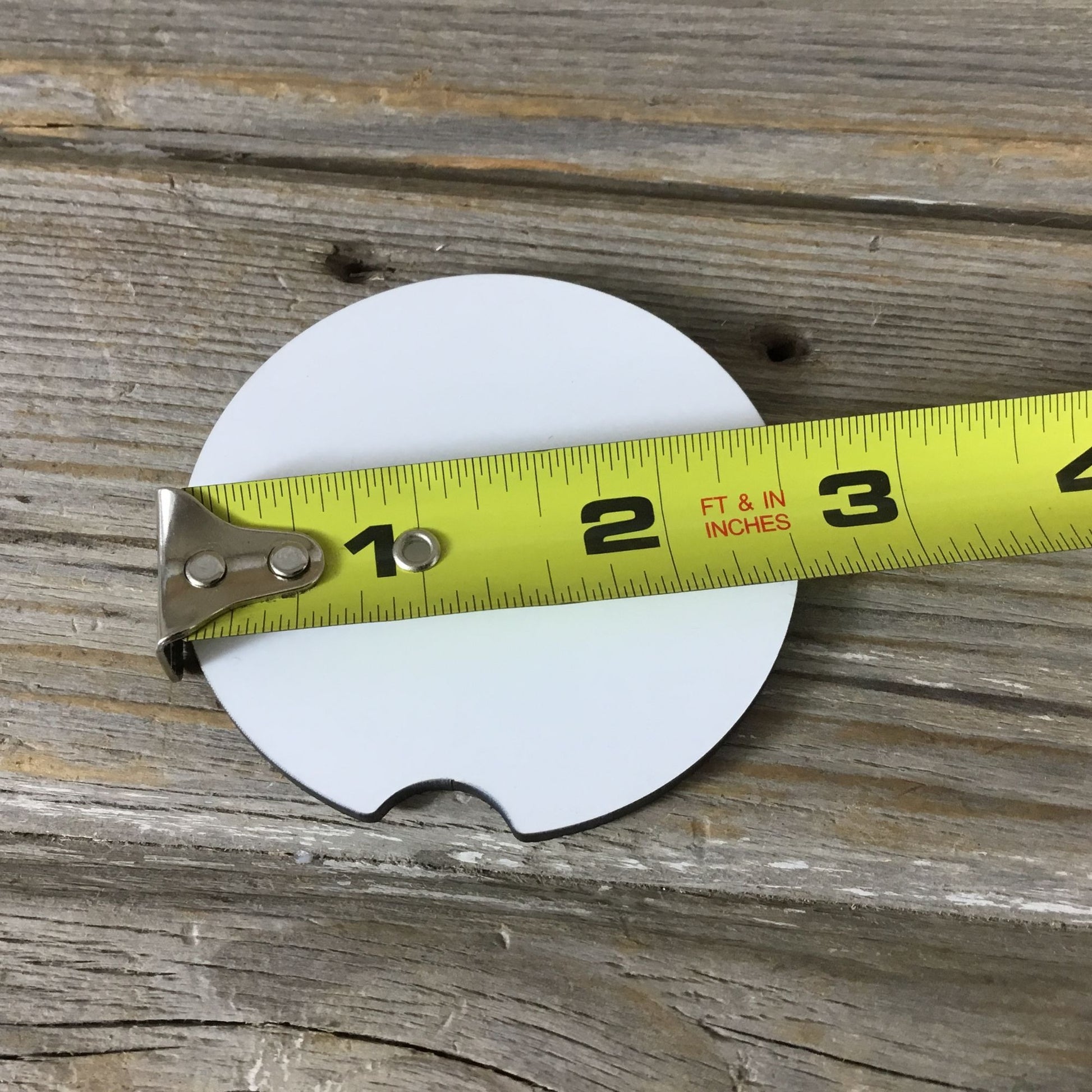 Absorbent sandstone car coasters designed to fit most cup holders. Adds a fun, colorful touch to your vehicle.