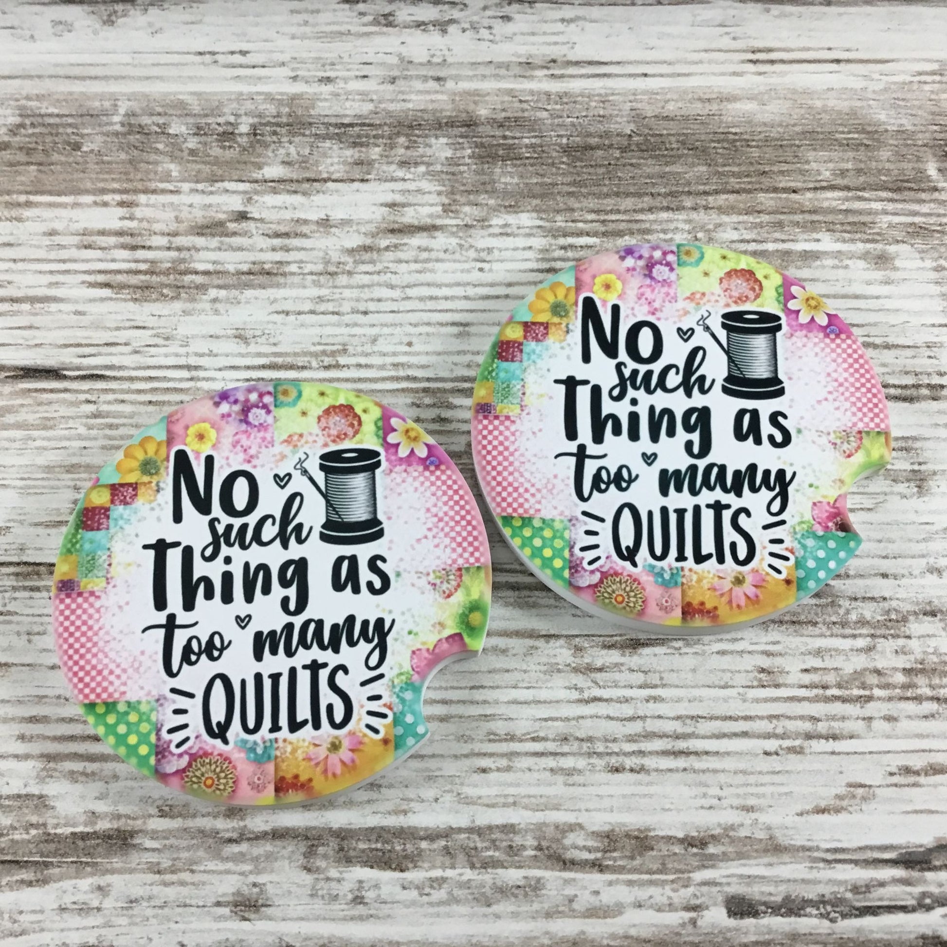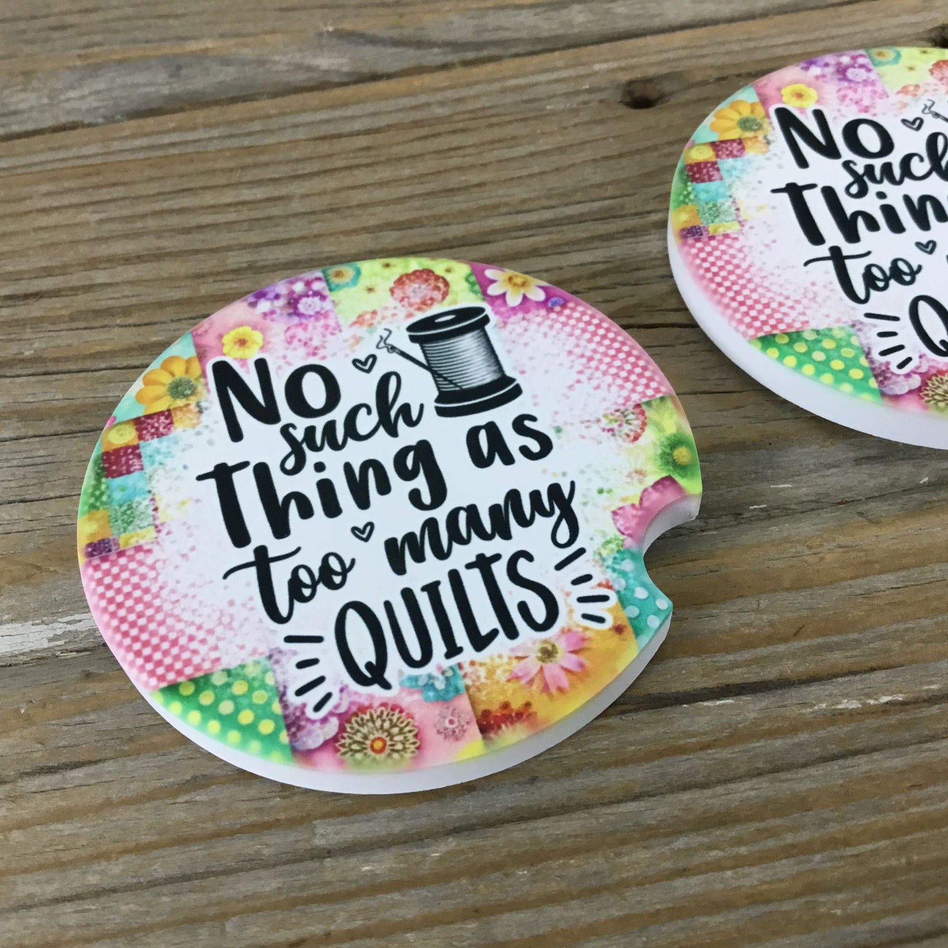 No Such Thing as Too Many Quilts Set of 2 Sandstone Car Coasters, Quilter Gift, Funny Quilt Lover Accessories