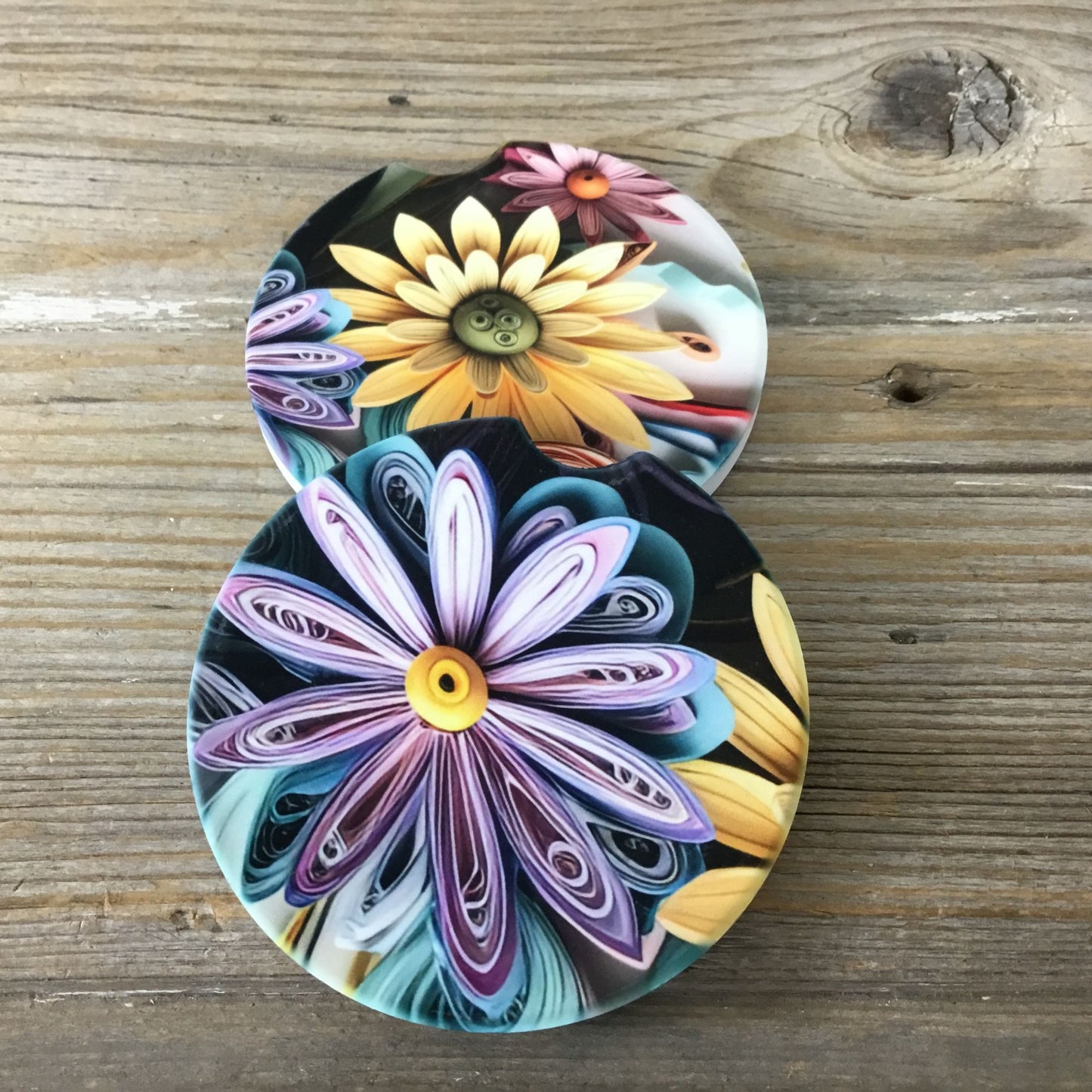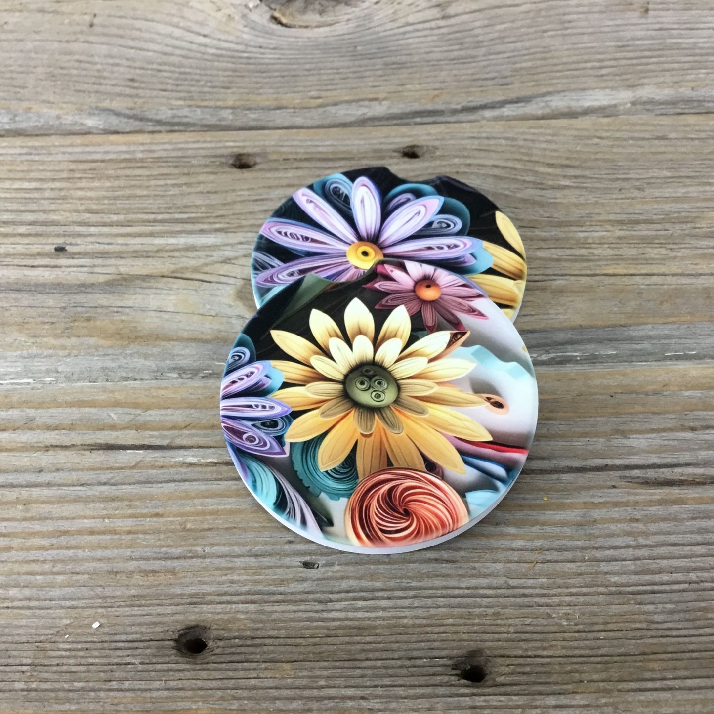 Pastel Paper Wildflowers Car Coasters Set of 2