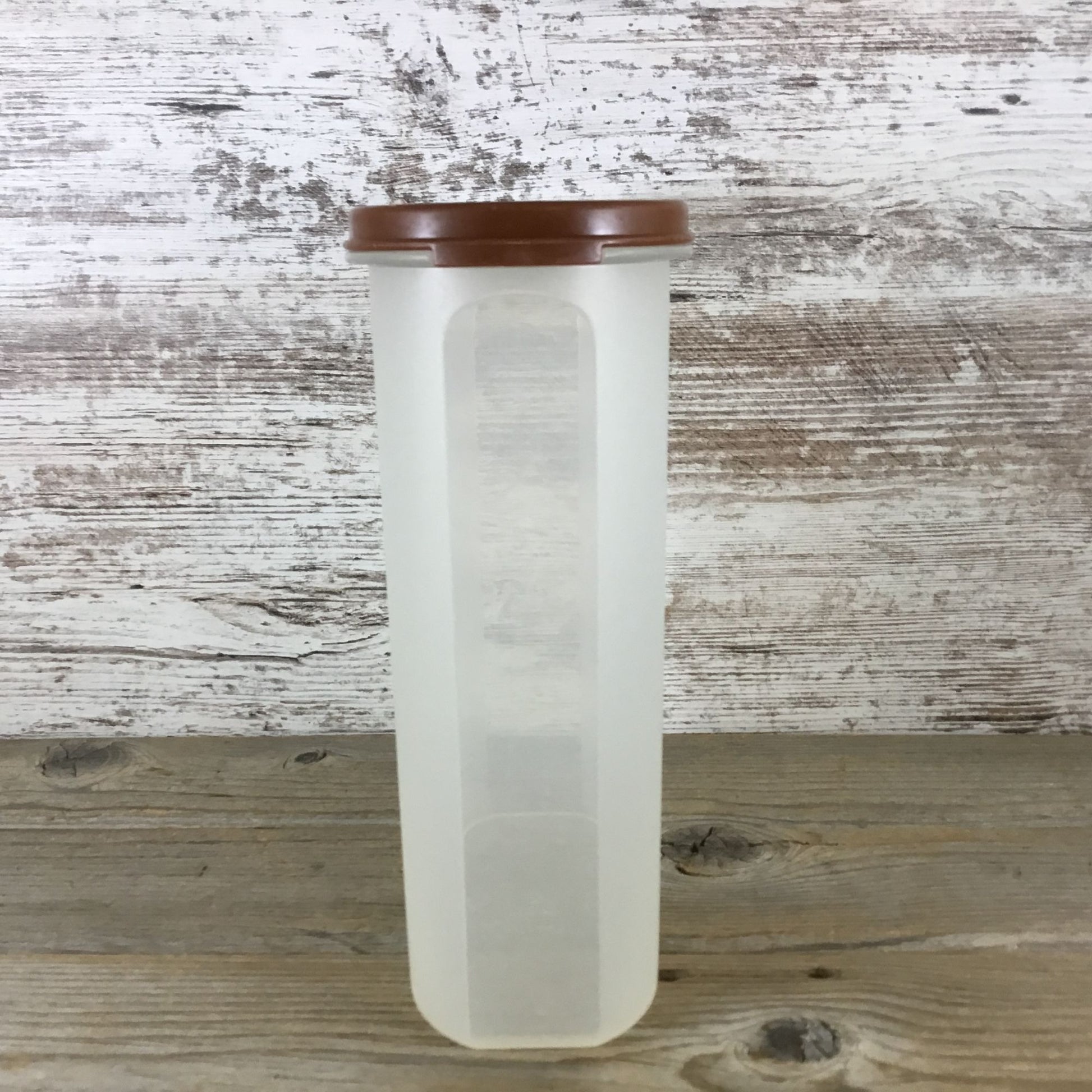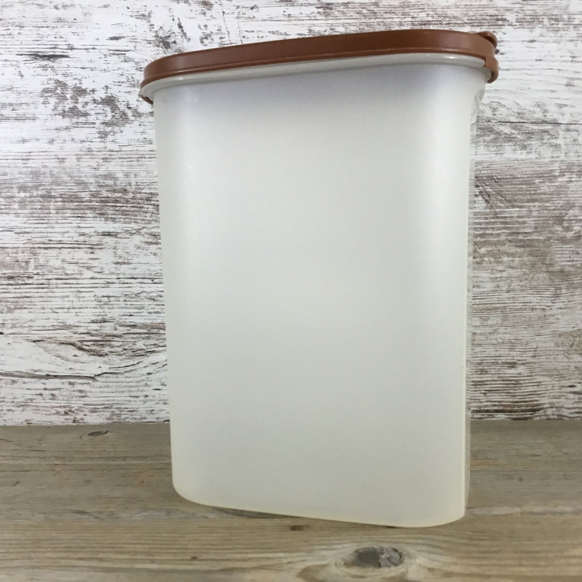 Keep your kitchen organized with this classic vintage Tupperware Modular Mate! This 1614-2 model features a brown lid and holds 9 3/4 cups (2.3 liters). Standing 9" tall, it shows some wear from previous use but is still fully functional. Perfect for collectors of retro Tupperware or anyone looking for a practical storage solution with a nostalgic touch.
